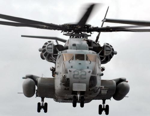 '스탤리온'이라 불리는 CH-53 헬기는 미 시콜스키사가 제작한 대형헬기로서 장거리 침투 병력 및 중량물 수송, 기뢰 탐지와 제거 등에 주로 사용된다.
