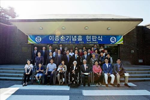 삼육대는 이씨의 뜻을 기리고자 교내 보건복지교육관을 '이종순 기념 홀'로 명명하고 23일 현판식을 열었다.