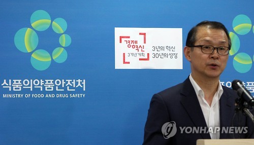 | △ 브리핑하는 식품의약품안전처 장기윤 차장 (청주=연합뉴스) 김형우 기자 = 26일 오후 청주시 오송읍 식품의약품안전처에서 장기윤 차장이 기자회견을 열어 논란이 된 백수오와 관련 브리핑을 하고 있다. 식품의약품안전처는 시중에 유통되는 백수오 제품 207개를 대상으로 이엽우피소 함유여부를 조사했다. 식약처 조사결과 시중에 유통되는 백수오 제품 가운데 이엽우피소가 검출되지 않은 '진짜' 백수오 제품은 5%에 불과한 것으로 나타났다. 2015.5.26 vodcast@yna.co.kr |