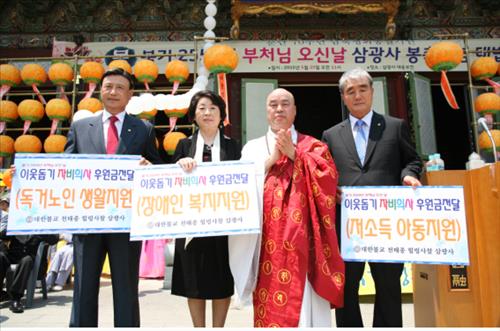 삼광사는 또 부처님 오신 날을 맞아 장애인, 독거노인, 저소득층 자녀를 돕기 위해 3개 단체에 후원금을 전달했다.