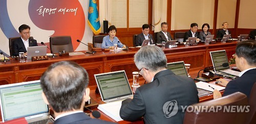 | △ 박 대통령 국무회의 주재 (서울=연합뉴스) 백승렬 기자 = 박근혜 대통령이 26일 청와대에서 열린 국무회의를 주재하고 있다. |