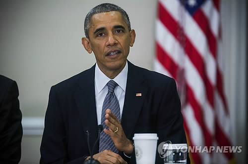 | △ (EPA=연합뉴스) 버락 오바마 미국 대통령이 지난해 12월 11일(현지시간) 열린 대통령 직속기구인 수출위원회 회의에 참석한 모습. 오바마 대통령은 이 자리에서 TPP 협상 타결 가능성에 대해 "강한 합의를 끌어낼 확률이 50대 50보다는 훨씬 높다고 생각한다"고 낙관했다. EPA/JIM LO SCALZO |