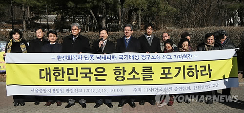 | △ 한국한센총연합회와 한센인권변호단 관계자들이 서울 서초동 서울지방법원 앞에서 한센 회복자들에 대한 강제 '낙태'·'단종'에 따른 국가배상 청구소송의 1심 선고에 관한 기자회견을 하고 있다.(연합뉴스 자료사진) |