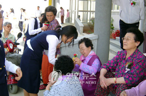 | △ 전북 익산시 왕궁면 왕궁중학교 학생들이 8일 어버이날을 맞아 소록도 다음으로 규모가 큰 왕궁면 한센인 정착촌을 찾아 '사랑의 카네이션'을 전달하고 있다./익산 왕궁중 제공/사회/ 2006.5.8 (익산=연합뉴스) <저작권자 ⓒ 2005 연 합 뉴 스. 무단전재-재배포 금지.> |