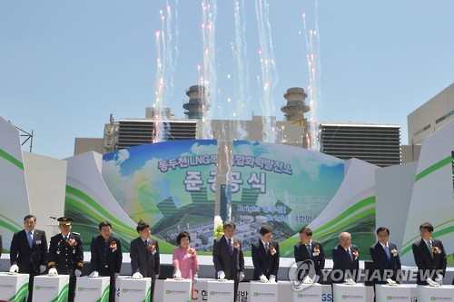 | △ 수도권 최대 동두천 LNG복합발전소 본격 가동 (동두천=연합뉴스) 노승혁 기자 = 경기도 동두천시에 수도권 최대 규모의 복합발전소가 본격 가동을 시작했다. 한국서부발전㈜, 삼성물산, 현대산업개발, GS에너지 등이 공동 출자해 설립한 드림파워㈜는 27일 광암동 현지에서 동두천LNG복합발전소 준공식을 했다. 2015.5.27 nsh@yna.co.kr |