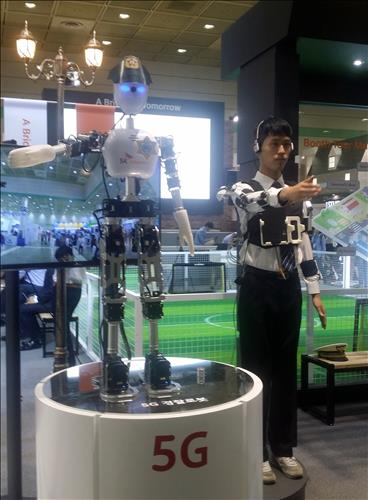 KT는 와이파이와 LTE를 병합해 기존 LTE보다 4배 빠른 속도를 내는 차세대 기술을 공개했다. SK텔레콤은 5G 기술을 적용, 사람 동작을 따라하는 경찰 로봇의 수신호를 구현했다.