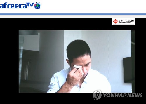 | △ 유승준, 인터넷 생중계 두번째 방송 (서울=연합뉴스) 가수 겸 배우 유승준(39)이 지난 인터넷 생중계 이후 변명으로 일관했다는 비난와 거짓 해명이라는 논란이 일자 27일 오전 아프리카TV를 통해 2차 방송에 나섰다. 그는 이날 지난 방송 이후 거짓 논란이 일어난 발언에 대해 설명하고 진심을 헤아려 달라며 흐느꼈다. 2015.5.27 << 아프리카TV 방송화면 캡처 >> photo@yna.co.kr |