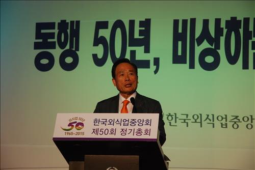 (서울=연합뉴스) 인교준 기자 = 한국외식업중앙회는 27일 서울 광진구 광장동 쉐라톤그랜드워커힐호텔에서 내외빈 1천여명이 참석한 가운데 제50회 정기총회를 열어 2015년도 주요사업계획안, 세입·세출 예산안을 의결했다.