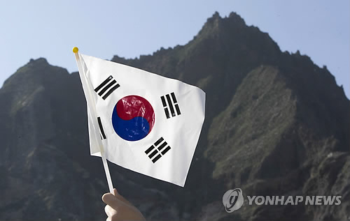 | △ '독도 앞 태극기' (독도=연합뉴스) 윤동진 기자 = 광복 70주년을 맞아 25일 오후 경상북도 울릉군 독도선착장을 찾은 독도탐방훈련단원이 태극기를 들고 있다. 비영리 시민단체인 독도수호국제연대의 독도아카데미 대학생 28기 임원진과 대학신문 '연세춘추' 기자단, 이화여대 독도지킴이, 국회정책 보좌관으로 구성된 독도탐방훈련단은 이날 독도를 찾아 일본의 독도 침탈 행위를 즉각 중단할 것을 촉구했다. 2015.4.25 mon@yna.co.kr |