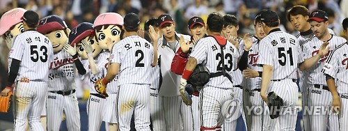 (서울=연합뉴스) 최인영 기자 = LG 트윈스가 우규민의 호투와 신진 타자들의 적시타를 앞세워 케이티 위즈와의 3연전을 위닝시리즈로 장식했다.