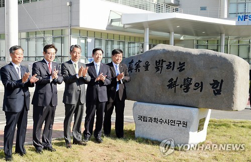 | △ 국과수 상징석 제막 (원주=연합뉴스) 배연호 기자 = 27일 국립과학수사연구원 상징석 제막식이 정종섭 행정자치부 장관 등이 참석한 가운데 열리고 있다. 국립과학수사연구원은 올해로 창립 60주년을 맞았다. |