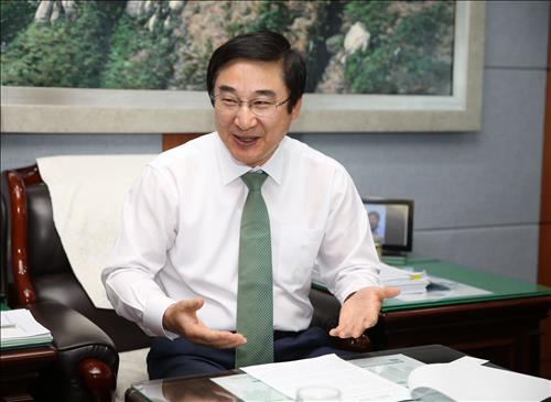 | △ 연합뉴스와 인터뷰 하는 이동진 도봉구청장<<도봉구청 제공>> |