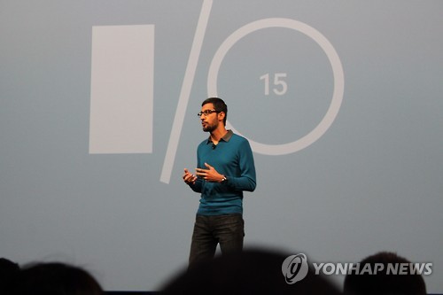 | △ 구글 I/O 개막 기조연설하는 순다르 피차이 (샌프란시스코=연합뉴스) 임화섭 특파원 = 세계 최대의 인터넷 서비스 기업 구글의 순다르 피차이 선임부사장이 28일(현지시간) 샌프란시스코 모스코니 센터 서관에서 개발자 회의 '구글 I/O 2015'의 기조연설을 하고 있다. 2015.5.29. solatido@yna.co.kr |