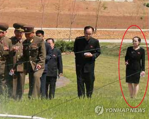 | △ 북한 김여정, '5월 출산설' 속 47일 만에 공개석상 출현 (서울=연합뉴스) 김정은 북한 국방위원회 제1위원장의 여동생으로 '5월 출산설'이 제기됐던 김여정 당 부부장이 29일 47일 만에 공개석상에 모습을 드러냈다. 이날 노동신문이 보도한 사진(오른쪽 원안) 속 김여정 부부장은 원피스 밖으로 드러나 출산설에 무게를 실었다. 2015.5.29 nkphoto@yna.co.kr |
