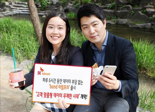 (서울=연합뉴스) 한지훈 기자 = SK텔레콤[017670]이 월 5천원을 추가로 내면 하루 6시간 동안 데이터를 무제한 사용할 수 있는 '밴드 타임프리' 서비스를 출시했다고 29일 밝혔다.