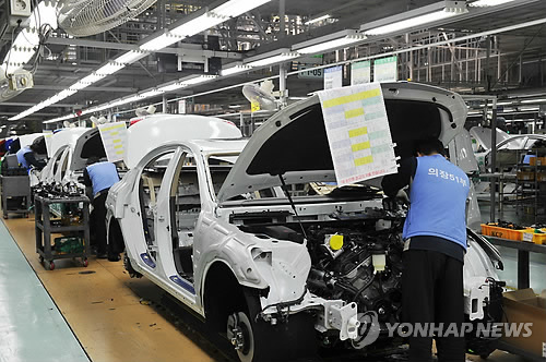 | △ 4월 광공업 생산은 전달보다 감소했으나 자동차 생산은2.8% 증가했다. 사진은 현대자동차 울산공장.(연합뉴스 자료사진) |