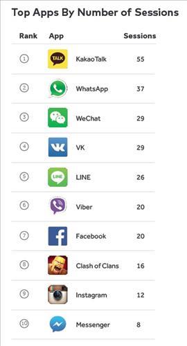 보고서에 따르면 이 기간 가장 많이 실행한 앱 상위 10개 중 6개가 메신저 앱이었다.
