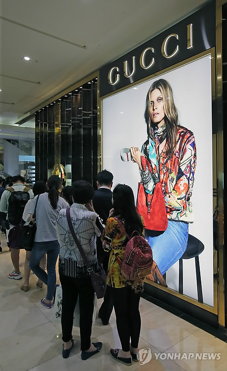 | △ '구찌 대란'…50% 시즌오프에 매장 북새통 (서울=연합뉴스) 이정훈 기자 = 29일 오후 서울 시내 한 백화점 구찌 매장 앞에서 고객들이 줄지어 입장을 기다리고 있다. 구찌는 이날부터 올해 봄·여름(S/S)시즌 상품 일부를 온라인 매장과 오프라인 매장에서 최대 50% 저렴하게 판매하는 시즌오프 행사에 들어갔다. 2015.5.29 uwg806@yna.co.kr |