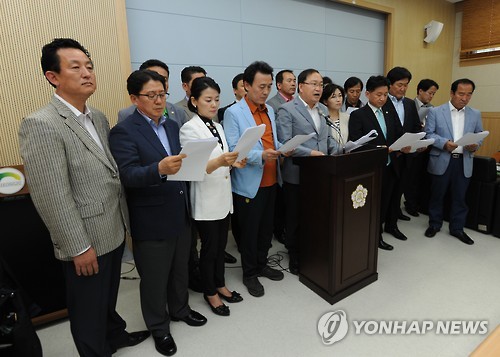 새정치연합 의원 17명은 우선 충북 시·군의회 의원 합동 연찬회와 상임위원회별 해외 연수 불참을 결의해 실행에 옮겼다.