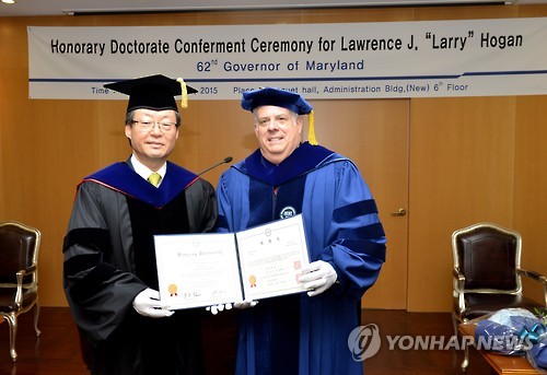 부인이 한국계인 래리 호건 주지사, 한양대서 명예박사학위 받아