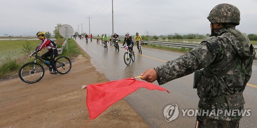 민통선 초소를 지키는 육군 장병도 오늘만큼은 바리케이드를 멀찍이 치워놓고 자전거 행렬을 맞이하는 데 분주했다.