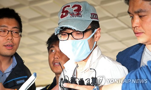 | △ 세월호 집회서 태극기 태운 20대 남성 (서울=연합뉴스) 전수영 기자 = 지난달 세월호 추모 집회에서 태극기를 태운 20대 남성이 30일 오후 서울지방경찰청 수사본부로 이송되고 있다. 2015.5.30 swimer@yna.co.kr |