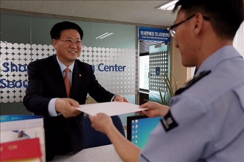 (서울=연합뉴스) 신호경 기자 = 서울시내 면세점 신규특허 신청 접수 마지막 날인 1일 후보 사업자 가운데 한화가 가장 먼저 사업계획서를 제출했다.