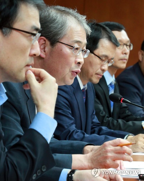 | △ 모두발언하는 임종룡 금융위원장 (서울=연합뉴스) 서명곤 기자 = 임종룡 금융위원장이 2일 오후 서울 중구 명동 은행연합회에서 신한과 NH, 하나, KB 등 9개 금융지주회사 전략담당 임원들과 개최한 '금융지주 경쟁력 강화를 위한 현장 간담회'에서 모두발언을 하고 있다. |
