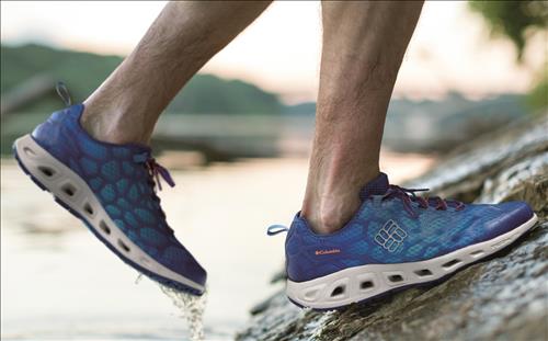 3일 아웃도어업계에 따르면 컬럼비아가 최근 출시한 수륙양용 아쿠아슈즈 '메가벤트'는 중창(미드솔)에 워터슈즈의 필수기능인 물 빠짐 배수 구멍을 적용해 뛰어난 배수력을 갖췄다.