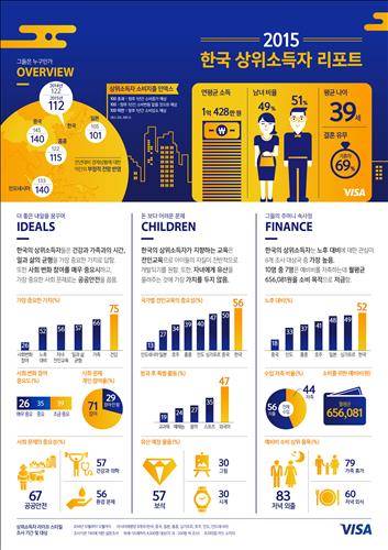 조사에 응한 한국의 상위소득자는 평균 39세로 연평균 소득은 1억428만원이었다. 69%가 기혼으로, 남자 51%와 여자 49% 등 성비는 비슷했다.