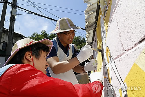 (서울=연합뉴스) 옥철 기자 = 포스코에너지(대표 황은연) 임직원 등 100여명이 3일 인천 서구 석남동 절골부락을 찾아 '빛의 마을' 벽화거리 조성사업을 벌였다.