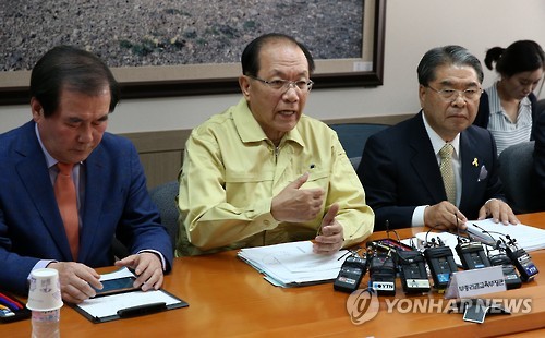 | △ 메르스 발생지역 시도교육감 대책회의 (서울=연합뉴스) 전수영 기자 = 황우여 사회부총리 겸 교육부 장관이 3일 오전 정부서울청사에서 열린 메르스 발생지역 시도교육감 대책회의에서 모두발언을 하고 있다. 왼쪽부터 김지철 충남교육감, 황우여 부총리, 이재정 경기도교육감. |