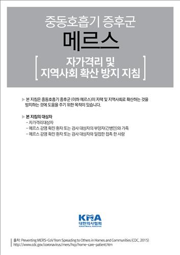 (서울=연합뉴스) 김병규 기자 = 대한의사협회(회장 추무진)가 3일 중동호흡기증후군(메르스)으로 인한 자가격리 대상자와 이들의 가족이 지켜야 할 예방조치를 모은 '자가격리 권고안'을 발표했다.