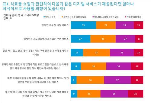 소비재를 살 때 유통업체가 제공하는 모바일 쿠폰 서비스를 이용한다는 응답도 27%로 나타나 아시아·태평양지역 평균(22%)을 웃돌았다.