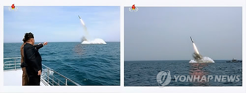 북한은 지난달 8일 조선중앙통신을 통해 김정은 북한 국방위원회 제1위원장이 참관하는 가운데 수중에서 탄도미사일을 발사하는 장면을 공개했다.