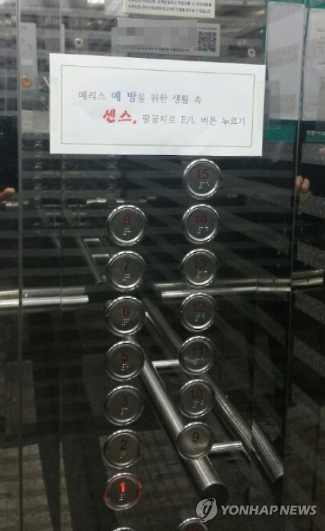 서울 강남권의 한 아파트는 엘리베이터 내부에 '메르스 예방을 위한 생활 속 센스, 팔꿈치로 버튼 누르기'란 글을 붙여 눈길을 끌었다.