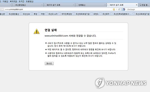 (서울=연합뉴스) 차지연 기자 = 중국에 서버를 둔 북한 주요 인터넷 사이트들이 이틀째 '먹통'인 것으로 4일 확인됐다.