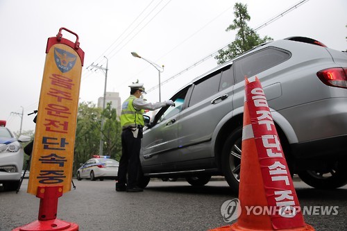 (부산=연합뉴스) 김선호 기자 = 중동 호흡기증후군(메르스) 공포가 확산하는 가운데 감지기에 입을 갖다대고 부는 경찰의 음주운전 단속 방식에 문제가 제기되고 있다.