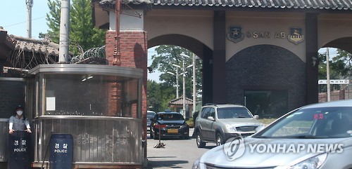 | △ '메르스 양성' 오산 공군기지 (평택=연합뉴스) 신영근 기자 = 4일 오전 경기도 평택 오산 공군기지 간부의 중동호흡기증후군(메르스) 양성 판정 소식이 전해진 가운데 부대 주변을 경비하는 경찰 병력이 마스크를 착용하고 근무하고 있다. |
