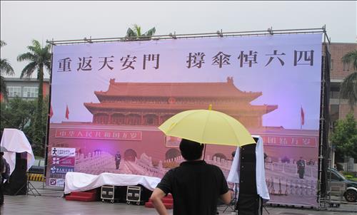 중국 톈안먼 전경을 배경으로 제작한 무대에서 진행된 이번 집회는 대만의 중국인권보호연맹 외에 대만 학생 중국민주화 추진회, 중화인민주서원 등 현지 10여개 민간단체들이 공동으로 주최했다.