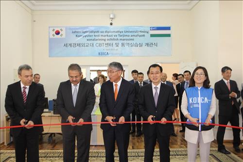4일(현지시간) 열린 CBT센터와 통역실습실 개관식에는 알리쉐르 구르마노프 우즈베키스탄 외교부 제1차관, 압두말리크 주마노프 세계경제외교대 총장, 이욱헌 우즈베키스탄 대사, 최성호 코이카 지역사업 이사, 임정희 코이카 우즈베키스탄 사무소장 등이 참석했다.