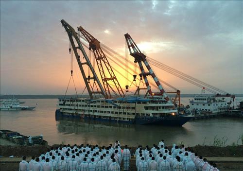 중국 관영 신화통신은 침몰사고 발생 닷새째인 5일 밤 배를 강 위로 끌어올리는 데 성공한 중국당국이 선내 수색작업을 벌여 6일 오전 8시 현재 사망자가 345명으로 늘었다고 보도했다.