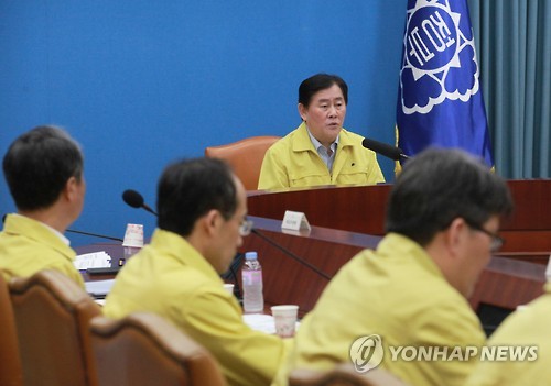 | △ 메르스 대응 관계 장관회의 (서울=연합뉴스) 서명곤 기자 = 최경환 국무총리 직무대행이 6일 오후 정부서울청사에서 열린 '메르스 대응 관계 장관회의'에서 모두발언을 하고 있다. |
