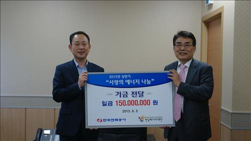 이를 위해 한전은 직원들의 자발적 기부금에 회사 지원금을 더한 1억5천만원을 지난 5일 한국에너지재단에 전달했다.