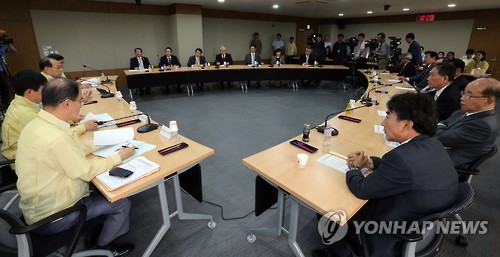 | △ 교육부, 메르스 관련 휴업중인 대학총장들과 간담회 (세종=연합뉴스) 배재만 기자 = 황우여 부총리 겸 교육부 장관이 8일 오전 정부세종청사 교육부 대회의실에서 메르스로 휴업중인 대학의 총장들과 간담회를 열고 조치 현황과 향후 대응 방안등에 대해 논의하고 있다. 2015.6.8 scoop@yna.co.kr http://blog.yonhapnews.co.kr/f6464 |
