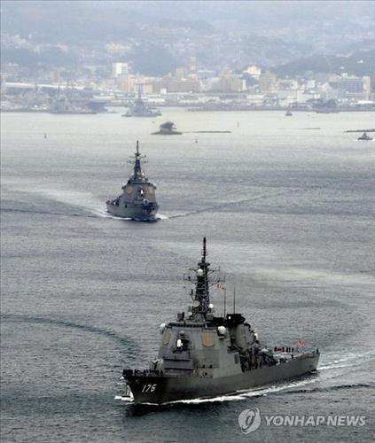 | △ 2012년 12월 나가사키현 해상자위대 사세보 기지를 나서는 요격미사일 SM3 탑재 이지스함.(교도.연합뉴스.자료사진) |
