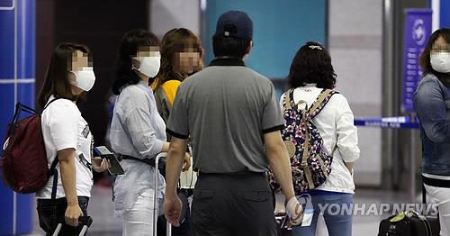 | △ (청주=연합뉴스) 김형우 기자 = 전국적으로 메르스 여파가 이어지는 가운데 8일 청주공항 이용객들이 마스크를 쓴 채 항공기 탑승절차를 밟고 있다. 2015.6.8 vodcast@yna.co.kr (끝) |