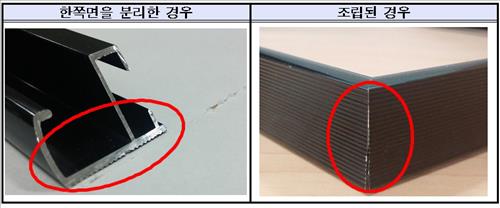(서울=연합뉴스) 이유미 기자 = ㈜에이모노의 알루미늄 액자가 모서리가 날카로워 손을 베일 우려가 있는 것으로 나타났다.