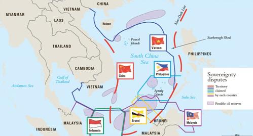 중국은 명확한 영유권 경계선을 공식화하고 있지 않으나 필리핀은 구단선에 대해 헤이그 국제사법재판소에서 불법성을 인정받으려 하고 있다.
