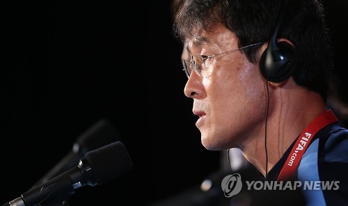 | △ 각오 말하는 윤덕여 감독 (몬트리올=연합뉴스) 신준희 기자 = 대한민국 여자 축구 대표팀 윤덕여 감독이 9일 오전(한국시간) 캐나다 몬트리올 올림픽 스타디움에서 열린 경기 전 공식 기자회견에서 각오를 말하고 있다. 우리나라는 한국시간 10일 오전 2015 캐나다 여자 월드컵 조별리그 E조 브라질과의 예선 첫 경기를 치른다. 2015.6.9 hama@yna.co.kr |